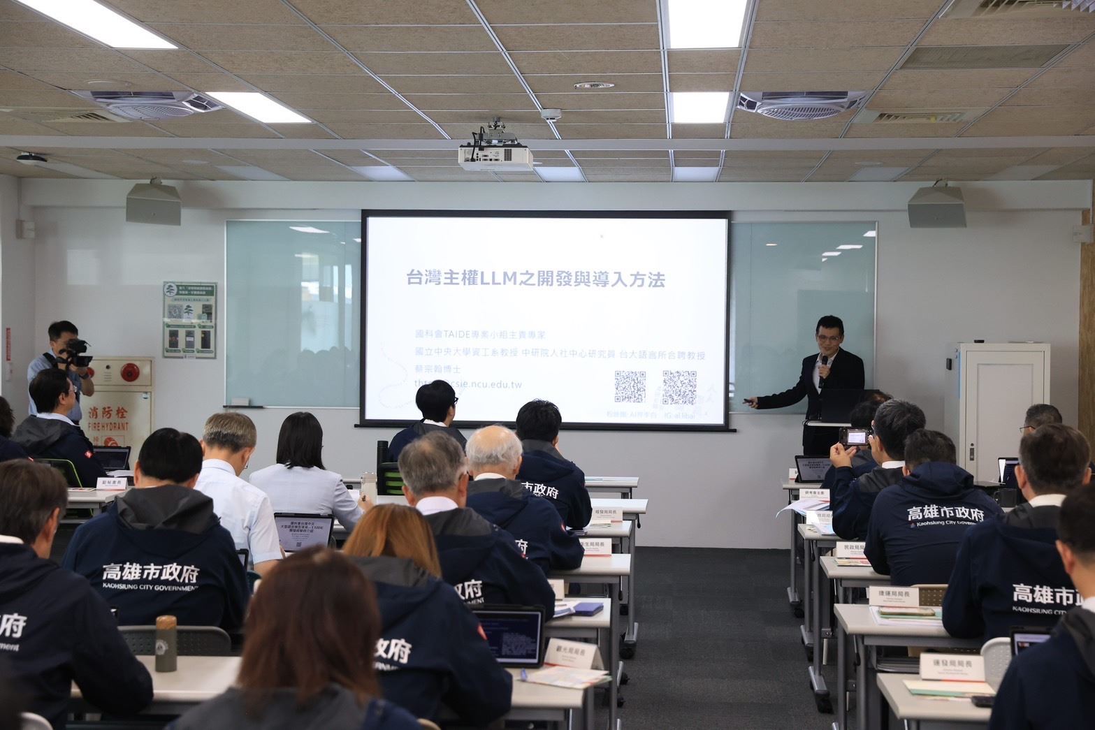 此外,高雄市府持續推動AI相關教育與應用,會議前特別邀請了中央大學資工系蔡宗翰教授,分享「國科會台灣中文大型語言模型專案—TAIDE」的開發經驗。